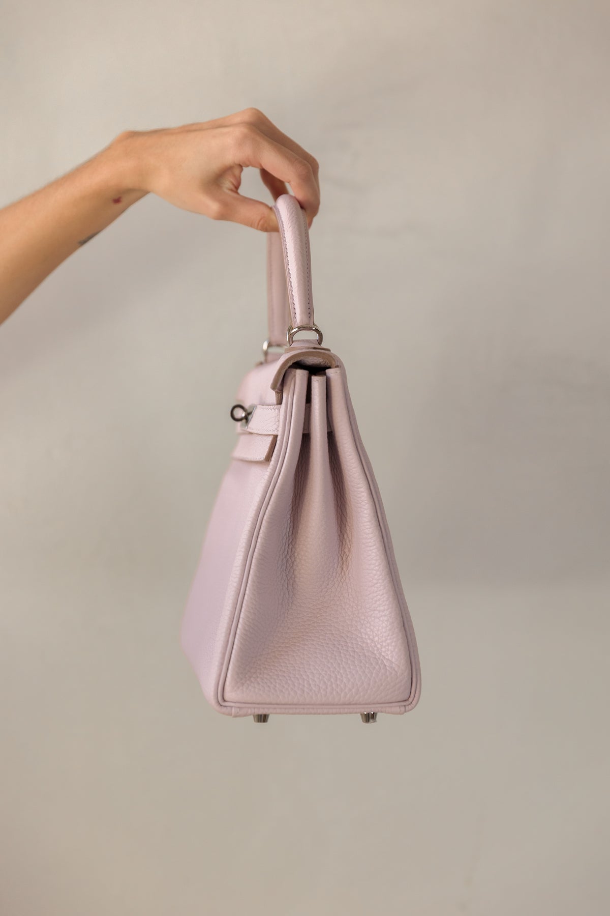 Pre-loved Hermes Kelly 28 Retourne Clemence Leather Mauve Pale PHW