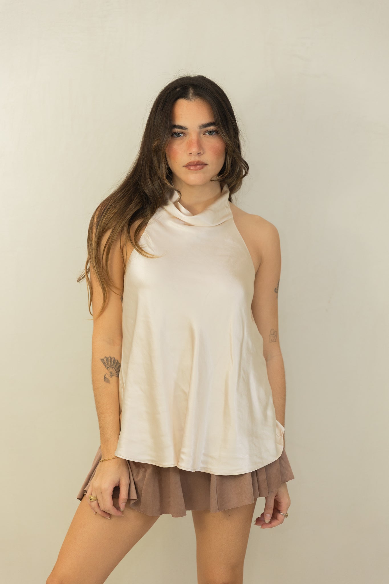 Champagne Satin Halter Neck Top