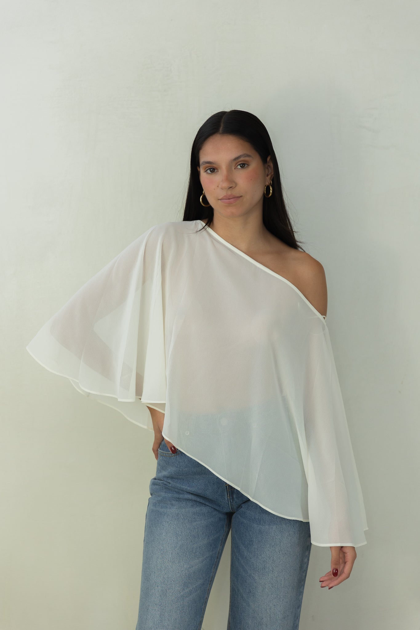 Sheer Cream Cape Top